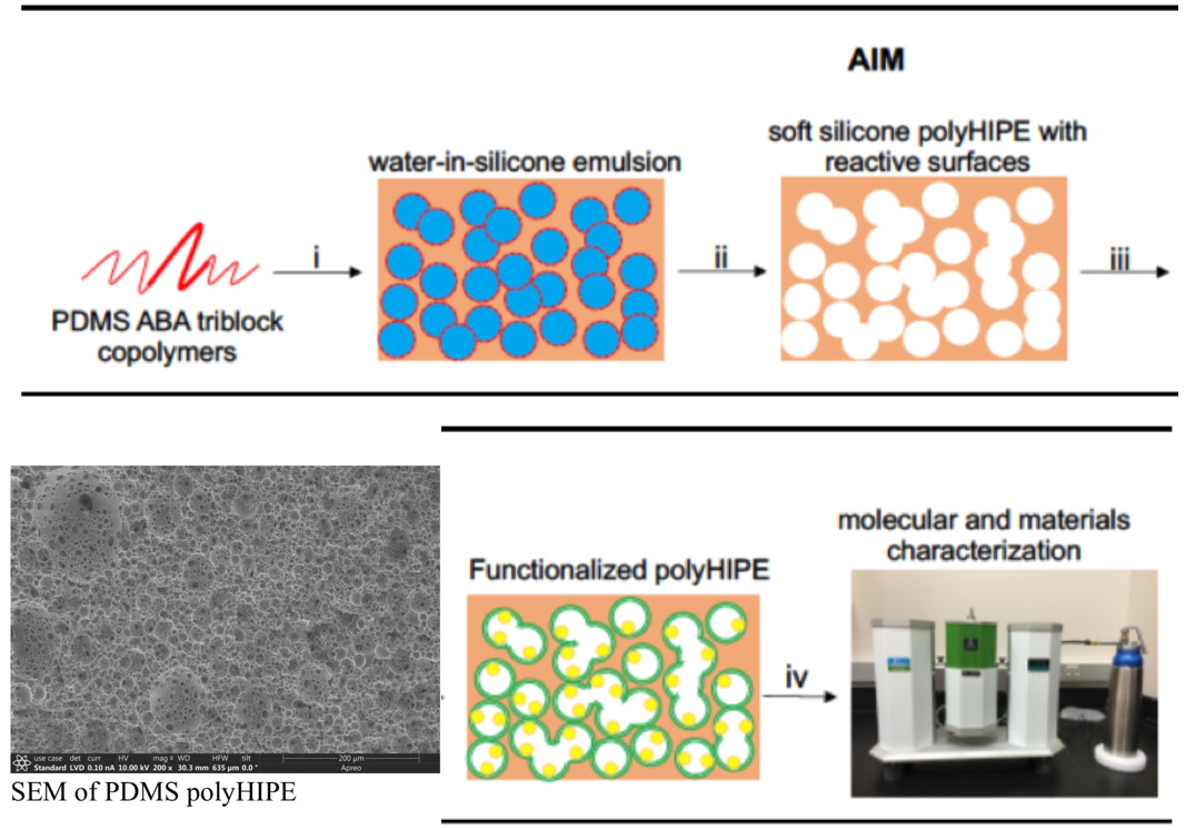 All our research is built on the foundation of using synthetic polymer chemistry to solve problems and create new materials. We are currently focused on making glycopolymer mimics for blood-compatible polymers, making shape memory polymer foams, and making biocompatible polymer gels and networks.