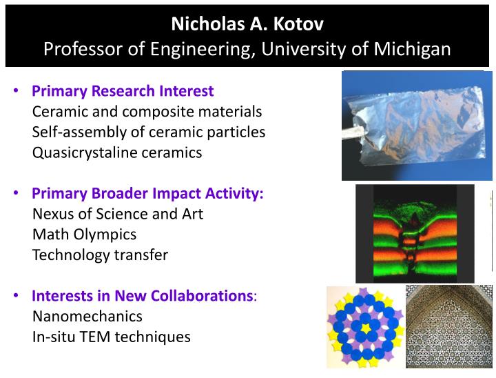This thrust also involves engineered and controlled nanostructural particulates targeting specific design targets such as the work of Nick Kotov.