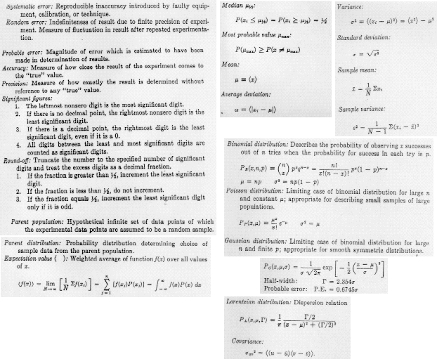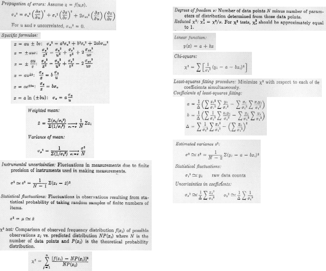 "Cheat Sheets" from: P. R. Bevington, "Data Reduction and Error Analysis for the Physical Sciences", McGraw Hill, NY (1969):