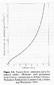 3) Rubber-Like Behavior- characterized by the absence of a yield point maximum but exhibiting a plateau in an engineering stress/strain curve. Often rubber-like behavior exhibits a terminal increase in the stress followed by failure which results in a tear with little permanent deformation exhibited in the failure surface, e.g. Jell-O.