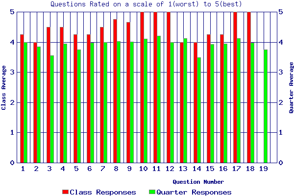 | 19 | The instructor made good use of TA's. | 0 | 0 | 0 | 0 | 0 | 4 | 3.75 | N/A |