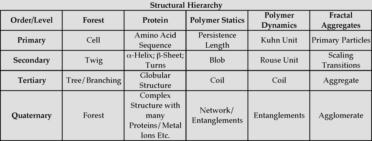 Within materials the main areas of study pertain to synthesis or primary production, physics and processing.  Morphology links all of these three thrusts in terms of processing-structure-property relationships.  Despite the pivotal role of Morphology, it is rarely studied as a core course in the Materials or in any other academic curriculum.  The morphology of metals and structural ceramics are based on crystallography and crystalline defect structure. This is the primary example of a simple morphology.  The structure of polymers, advanced ceramics, biomaterials and colloids are based on a hierarchical motif that serves as a definition of complex materials.  The hierarchical motif is best described in terms of levels-of-structure that build from small-scale structure to large-size-scale structure through discrete levels of morphology or structural levels.  Structural levels were first understood in terms of degree in structural biology: primary, secondary, tertiary and quaternary.  When scaling features were understood for disordered materials, hierarchical levels were described by primary particle, aggregate, agglomerate structures. In polymers, thermodynamically equilibrated hierarchical structures were described through the Blob concept which has now been understood as a fundamental approach to thermodynamic accommodation and equilibration in complex materials.  Complex materials display new mechanisms to equilibrate with their surroundings (or to accommodate kinetics) that are not available to simple morphologies and these new mechanisms are pivotal to understanding issues such as protein folding, polymer structure/property relationships and growth processes in aggregated nanomaterials.