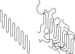 Polymers are unique among engineering materials since they are the only common technological material in which the amorphous state can be the minimum energy state. This is a consequence of topology. Molecular topology is a description of molecules which includes their stereo-chemical arrangement, branching, formation of helices and network/looping/entanglement characteristics. Consider two chains represented using a worm-like model (below)