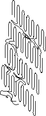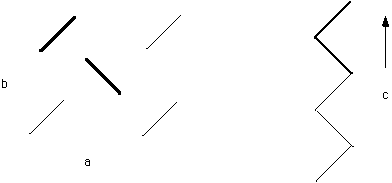 As the unit cell lattice site becomes more complicated and/or becomes capable of bonding in different ways in different directions the Bravis lattice becomes more complicated, i.e. less symmetric. This is true for oligomeric organic molecules. For example olefins (such as dodecane (n=12) and squalene (n=112)) crystallize into an orthorhombic unit cells which have a, b and c different while a=b=g=90°. The reason a, b and c are different is the different bonding mechanisms in the different directions. This is reflected in vastly different thermal expansion coefficients in the different directions. The orthorhombic structure of olefinic crystals is shown below. Two chains make up the unit cell lattice site (shown in bold). The direction of the planar zigzag (or helix) in a polymer crystal is always the c-axis by convention.