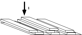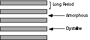 p/l sin(q/2), where q is the scattering angle. Bragg's law can be used to determine the long period, L = 2p/q*. Figure 4.8 on pp. 151 shows such Lorentzian corrected data. The peak occurs at about 0.2 degrees! In some cases the x-ray data has been Fourier transformed to obtain a correlation function for the lamellae which indicate an average lamellar profile as shown in figure 4.9 pp. 152.The degree of stacking of lamellae would appear to be a direct function of the density of crystallization, i.e. in lower crystallinity systems stacking is less prominent, and the extent of entanglement of the polymer chains in the melt. You can think of lamellar stacking as resulting from a reeling in of the lamellae as chains which bridge different lamellae further crystallize as well as a consequence of spatial constraints in densely crystallized systems.