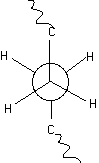Polyethylene is the most common commercial polymer. The secondary structure required for PE to crystallize is a planar zigzag conformation with no helical twist. Polyethylene does not possess tacticity since all substitutent groups are the same. If we consider a Neuman Projection along the chain for two carbons it can be seen that rotation about the C-C bond leads to variable energy states.