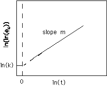 and results in a linear plot of slope m and extrapolated intercept ln(k).