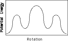 The minimum in this energy diagram (shown to the left) is the trans state. The subminima are the gauche states. The planar zigzag conformation is produced by all trans states.