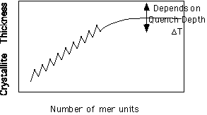 This means that understanding the relationship between quench depth and crystallite thickness is one of only two concrete features for polymer crystals. John (Jack) Hoffman was the first to describe this relationship although his derivation of a crystallite thickness law borrowed heavily on asymmetric growth models form low molecular weight, particularly ceramic an metallurgical systems. Hoffman's law is given in equation 4.23 on pp. 166: