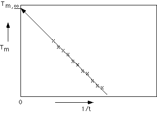 where n* is the thickness of the equilibrium crystal crystallized at T (which is below the equilibrium melting point for a crystal of infinite thickness, Tf°), s is the excess surface free energy associated with folded chains at the lateral surface of platelet crystals, and DH is the heat of fusion associated with one monomer.