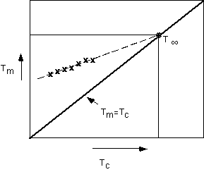 The crystallite crystallized at "T" is in equilibrium with its melt and this equilibrium state is adjusted by adjusting the thickness of the crystallite using the surface energy, that is,