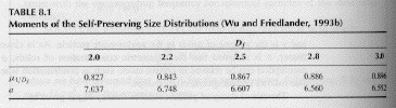 and "a" is an integral function of the self-preserving distribution function above. Values for a are given by Friedlander from Monte Carlo calculations,