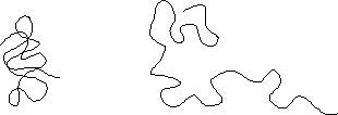 Brownian motion of a particle occurs in a close to random manner. If the path of a particle in a random (Brownian) walk is traced in time it will most likely cross itself several times (Left below in 2-d). If the walk does not penetrate itself a different type of path is formed, the self-avoiding walk (Right below in 2-d).
