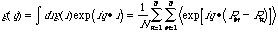 The exponential term in the summation for g(q) given above can be expanded using e-x = 1 - x/1! + x2/2! - x3/3! + ... xn/n! + ... For x less than 1, i.e. at low-q, this can be truncated to the first three terms so the argument of the double summation becomes [1 - iq<(Rn - Rm)> <cos a> - (1/2) q2 <(Rn - Rm)2> <cos2 a> + ...] where a is the angle between q and (Rn - Rm). Since cosine is an even function the term <cos a> = 0. Also, from math handbooks <cos2 a> = 1/3. The argument of the double summation then becomes, [1 - (1/6) q2 <(Rn - Rm)2>]. By performing the summation on the two terms independently, the summation for g(q) can be written,