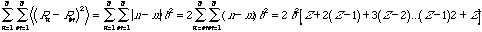 where Z = N - 1. The last double summation can be justified by constructing an NxN matrix of m vs n with values of |n - m|. Such a matrix is symmetric about m = n (this is where the 2 prefactor comes from). The double summation at the end can be rewritten,