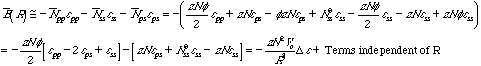 which has the same functional form as the original "long-range" interaction expression with VC being replaced by VC (1-2c) = V, the excluded volume as a function of goodness of solvent!