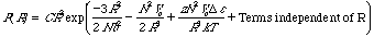 Consider a chain of length N whose average end to end distance is N1/2 b, where b is the effective step length for the chain which has no long-range interactions. For the n'th chain step, gn(r) is the average density of segments at a radial position r from step n. Rn is here the position vector for the segments of the chain. It is important to keep clear that rn is a radial position relative to segment "n" while Rn is the segmental position relative to a coordinate system based at the first segment where n = 1. n can have values from 1 to N. Then,