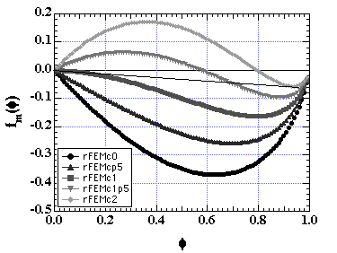 fm(f) = f lnf / N + (1-f) ln(1- f) + c f (1- f)
