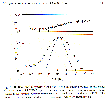 Polymer transitions involve more than one relaxation time as indicated by the comparison with a simple, Debye-process in figure 5.10. This is also true for the