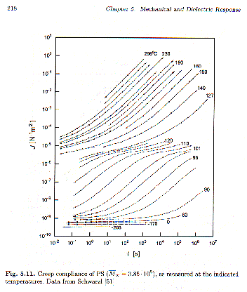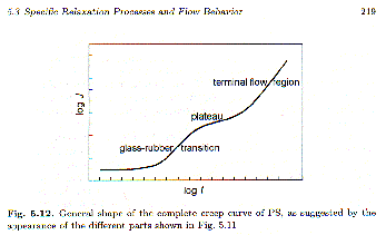 Strobls figure 5.12 shows the characteristic features of compliance, J, for a polymer as a function of time = 1/