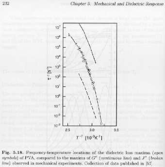The measurement of the dynamic response of a linear system (for small magnitude perturbations) are identified with a spectral analysis of equilibrium fluctuations due to thermal motion by the fludtuation-dissipation theorem. A system such as a polymer displays many dynamic modes. Consider a guitar string of length L. Vibration of the string can occur with one large sine wave of wavelength 2L, a smaller wave of wavelength L and many other modes of length 2/3 L, 1/2 L and so forth. A polymer chain is analogous but more complex including both normal modes in the chain direction as well as modes associated with the a-process at the glass transition and lower temperature b, and g-modes and so on. We have shown that the response in dielectric and mechanical compliance and modulus measurements can probe these modes of response. For the a-process modes at the glass transition, we have shown that the average relaxation time by these different techniques shows similar scaling behavior in temperature but different values (Strobl figure 5.18).