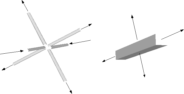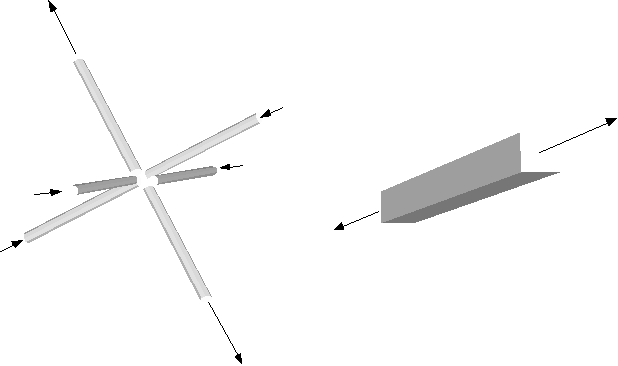 Essentially all polymer melts are incompressible so a1 + a2 + a3 =0. There are three simple types of elongational flow which can be modeled in a laboratory flow experiment by the flow condition at the intersection of 6 orthogonal tubes, or in a mechanical experiment by arrangements of tensile grips on a fluid element.