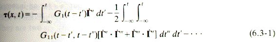 If only the first integral is retained in 6.3-1 the Goddard Miller (GM) equation can result which under small deformations, where the corotation frame becomes equivalent to the lab frame, the LVE equations result. One of these is the Maxwell constitutive equation: