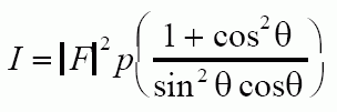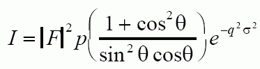 Ihkl = (K/r2) (1 + cos22q) |Fhkl|2 phkl (q-dependent from item 6) (q-dependent from item 7)