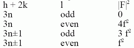 for Unmixed hkl => F = 4f and F2 = 16f2