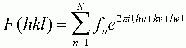 The structure factor for a unit cell from a given set of (hkl) planes is calculated from the summation of the amplitude function from each atom in the unit cell [uvw]: