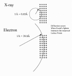Figure 2. Ewalds Sphere construction for electron and X-ray radiation.