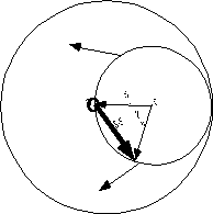 q the vector S-S0 changes length and direction. In this process a sphere is created (a circle in a 2-d drawing) centered on the point C and with the point O on the sphere surface at 2q = 0. If an inverse lattice point falls on the surface of the sphere traced out by S-S0 then a diffraction event occurs. The sphere is called the sphere of reflection for obvious reasons