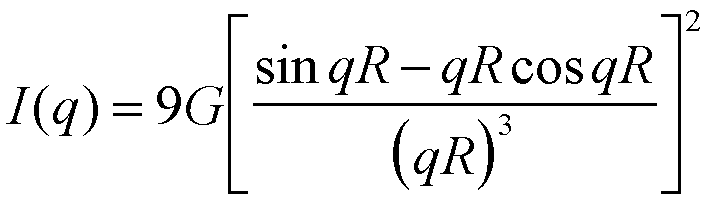 where G ~ N<Dr2V2>. Eq. (12) yields Porod's law at high-qR and Guinier's law at low-qR relative to qR = 1. Then eq. (12) describes the overlap between Guinier and Porod regimes for the specific structure of monodisperse spheres.