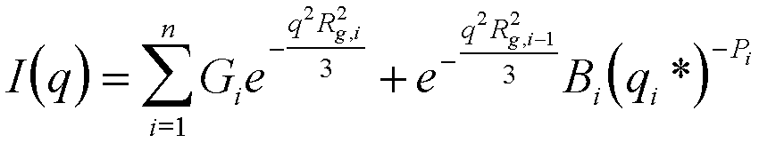 where n levels of structure are considered and where Rg, 0 = 0. Lower values of i correspond to smaller structures or higher-q so the numbering of structural levels begins at the smallest size. Equation (15) can reproduce the scaling features of all conventional scattering laws that do not involve correlations. It can be used for fractal scattering with non-integral scaling and can reproduce scattering curves from a variety of systems that have no analytic form such as scattering from rough surfaced particles.