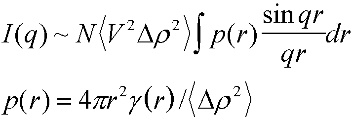 where p(r) is the normalized total pairwise distribution function. p(r) has a value of 0 at r = 0 (since r2 is 0 and g(r) is finite) and also has a value of 0 for r larger than the largest object size since g(r) goes to 0 at large r. p(r) shows a peak in r near a mean object size. The integral of p(r) over all r is 1. p(r) includes the increase in area associated with larger r so it is a total probability rather than a linear density based probability. Equation (7) is sometimes called the Debye scattering function since it was derived by Debye.