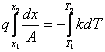 Where q is the rate of heat transfer (dQ/dt) to/from the system. To correctly solve this equation, the area (A) through which the heat is being transferred must be known as a function of position (x). In the event that k is a constant, the integration of the above equation results in: