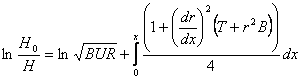 If T, B, Z, and R0 are specified, the thickness reduction at x is given by: